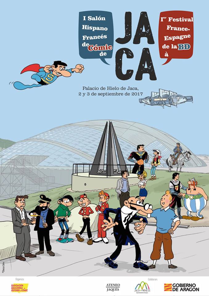 El 2 y 3 de septiembre celebraremos el primer Salón del cómic Hispano Francés de JACA. Organizado por la AAAC y con la colaboración del Gobierno de Aragón, Ayuntamiento de Jaca y Ateneo Jaqués, contaremos con la presencia de editoriales y grandes autores tanto nacionales como franceses. Os iremos informando de todo lo bueno que va a venir, pero de momento os presentamos el cartel del festival realizado por el dibujante Chesus Calvo...